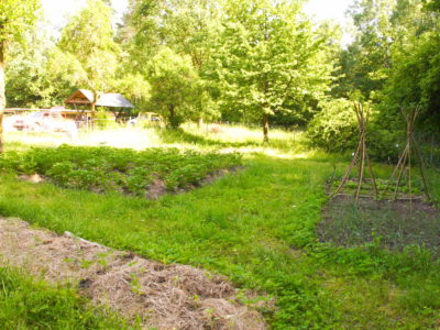 Bereits im Februar dieses Jahres hatten sich die GärtnerInnen getroffen, um bei Wind und Wetter den Wildtierzaun aufzustellen, um das Gemüse z.B. vor den Wildschweinen schützen zu können. Seither hat sich bei zahlreichen Treffen die Gartenfläche ganz gut entwickelt, mit Feuerstelle, Komposttrenntoilette, Kompoststelle, Bienenkasten und vielfältigen Beeten mit unterschiedlichem Gemüse